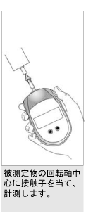 マウスをイメージした手のひらサイズのコンパクト設計 ●最大、最小値、最終計測値、ほか10点のデータをメモリ ●幅広い単位での換算表示が可能 rpm 、 cm / s 、 m / min 、 m 、 km (EE-2Bは回転速度のみ) ●文字高12mm、5桁表示のLCD表示部 ●キャリングケース付属で持ち運びにも便利 【仕様】 形式 EE-1B 計測方式 接触式接触子を回転軸中心にあてて計測 表示器 5桁表示LCD(液晶)文字高さ12mm <測定範囲>回転速度 1.0 〜 25,000rpm 0.02 〜 416.67rev/sec <測定範囲>周速度(接触)(6形ホイルを装着) 0.3 〜 6350.0cm/sec 0.003 〜 63.500m/sec 0.2 〜 3810.0m/min 0.003 〜 228.60km/h <測定範囲>長さ (接触) (6形ホイルを装着) 1 〜 99,999cm 0.01 〜 99,999m 0.0001 〜 99,999km <測定範囲>総回転数 0.1 〜 99,999rev 測定精度 1.0 〜 599.9rpm:±1rpm 600.0〜25,000rpm:±0.006%および±0.5digit 計測時間 4.0rpm未満:最大10秒 4.0rpm〜25,000rpm:約1秒 計測距離 − メモリ 最終計測値、最大・最小値、 及び計測値10点とその平均値 電源 単3乾電池(マンガン又はアルカリ)3本 オートパワーオフ 5分 付属品 キャリングケース 単3マンガン乾電池3本 取扱説明書 6形ホイル凹アダプタ(じょうご形)1個 凸アダプタ(円錐形) 1個 外形寸法 長122.5×幅64×厚31.5mm ケース ABS樹脂 本体質量 本体:約180g(電池含) 使用周囲温度 0℃ 〜 40℃(但し結露なきこと) 【納期】メーカーに在庫があれば、納期約3〜4日(営業日)で出荷いたします。